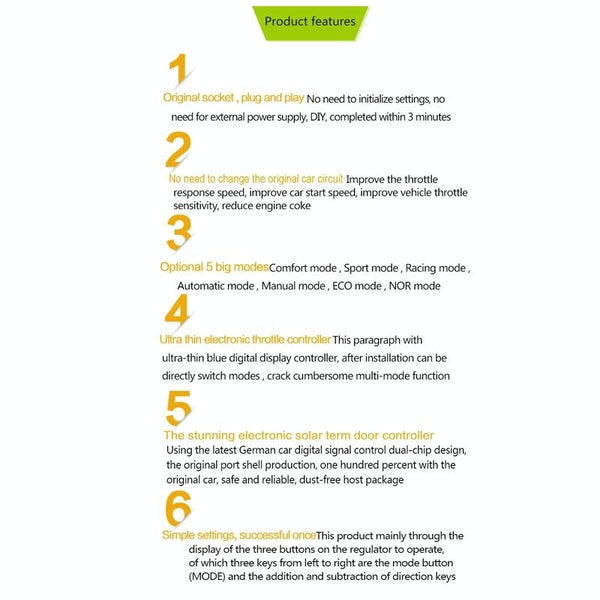 4. 5 modes: sports mode / economy mode / original mode / manual mode / automatic mode