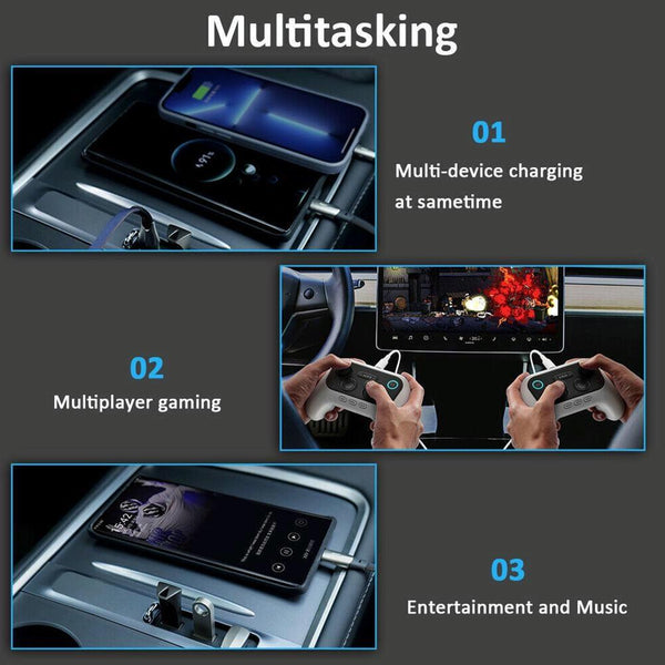 For Tesla Model 3/Y Car T09 Center Console 27W 3-in-1 USB Hub Docking Station(Gray Black)