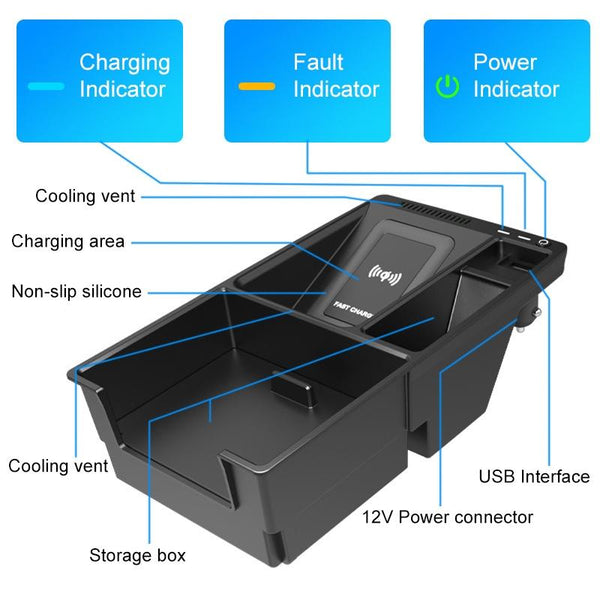 HFC-1050 Car Qi Standard Wireless Charger 10W Quick Charging for Audi A4L 2017-2022, Left Driving