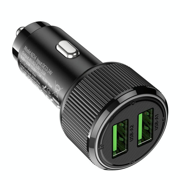 hoco NZ14 Guerrero 36W Dual-port USB Car Charger(Black)