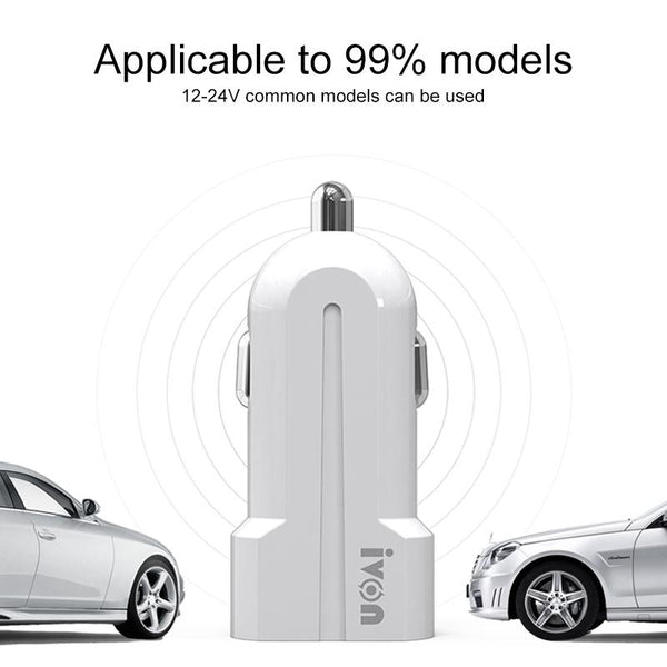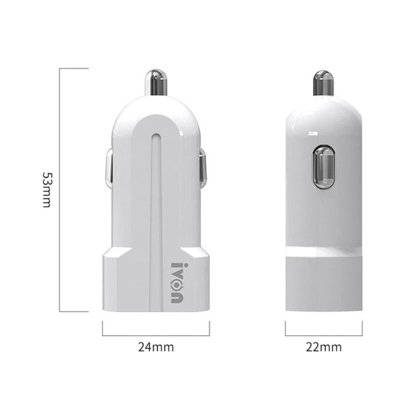 IVON CC13 QC 3.0 Fast Charging Car Charger Set with 8 Pin Charging Cable (White)