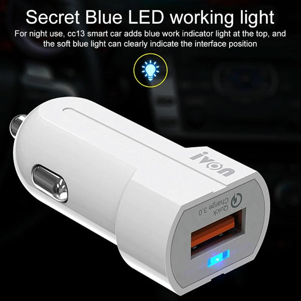 IVON CC13 QC 3.0 Fast Charging Car Charger Set with Micro USB Charging Cable (White)
