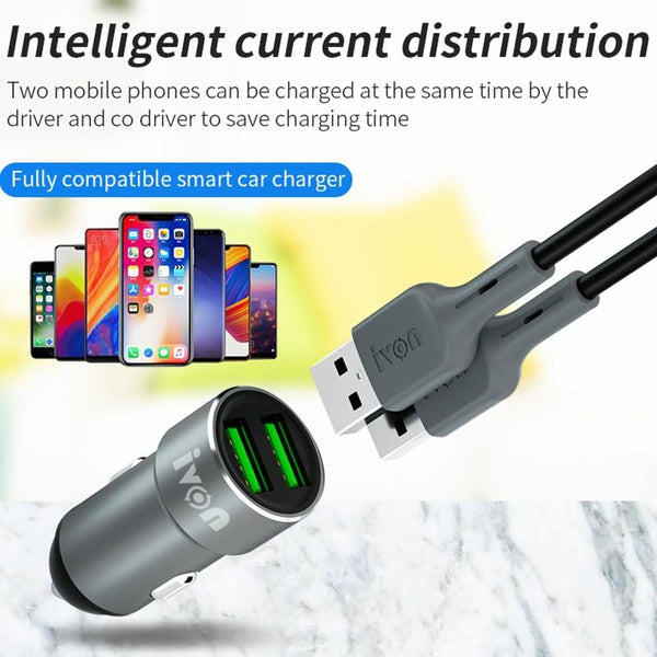 IVON CC38 2.4A Dual USB Car Charger + 1m USB to Micro USB Fast Charge Data Cable Set