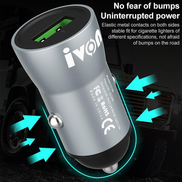IVON CC39 18W 3.1A QC 3.0 USB Car Charger + 1m USB to 8 Pin Fast Charge Data Cable Set