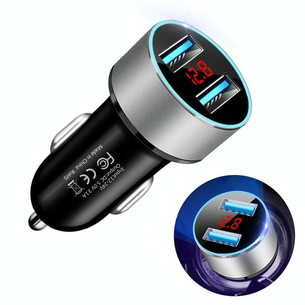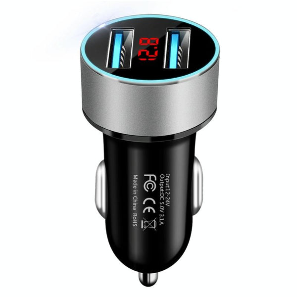 JMG-C016A 5V 3.1A Car Dual USB Charger with LED Display(Silver)