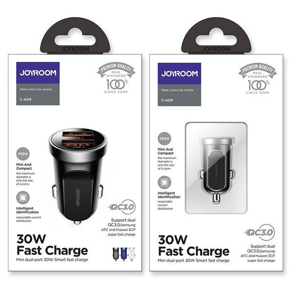 JOYROOM C-A09 30W Mini Dual QC3.0 Smart Car Charger (Black)