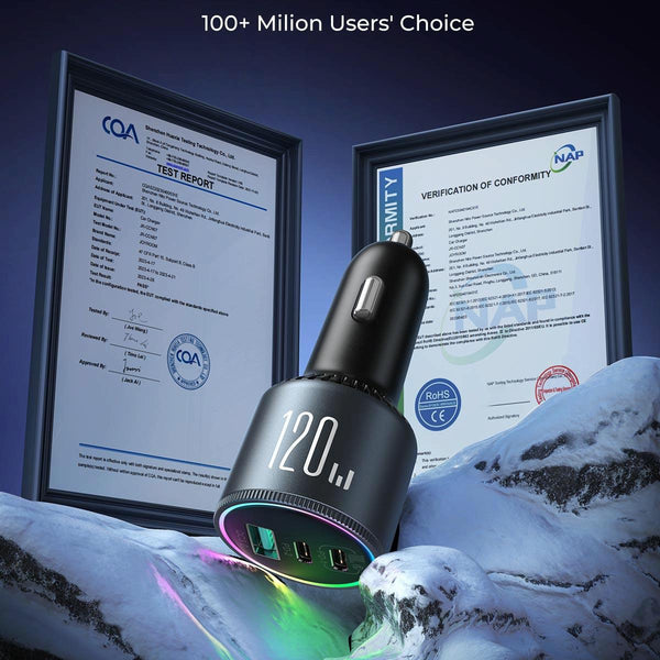 JOYROOM JR-CCN07 120W Dual PD+QC3.0 3-Port Car Charger(Dark Gray)