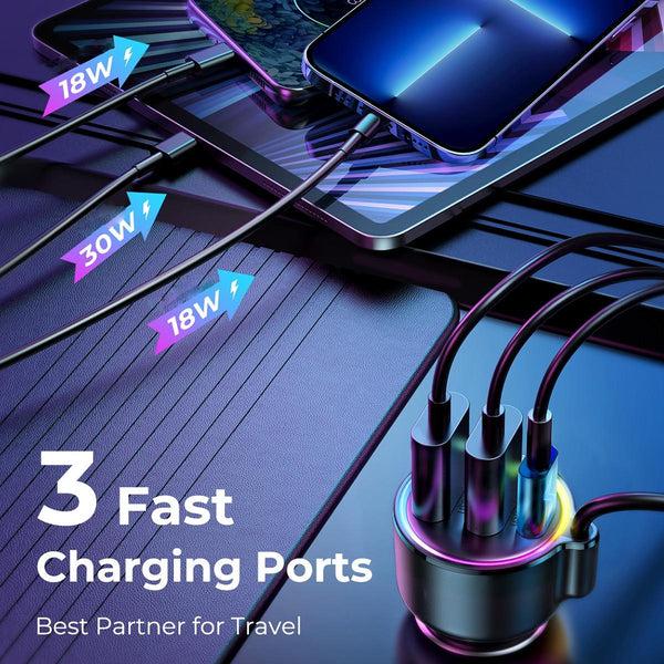 2. Two QC3.0 and one PD 30W fast charging ports, provide charging for three devices simultaneously