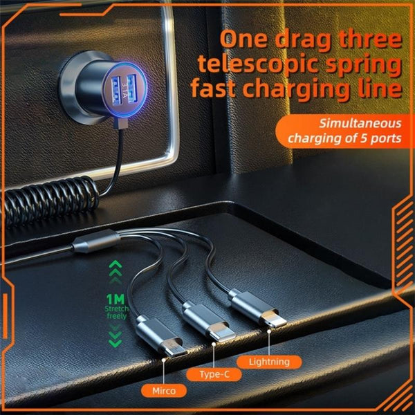 K15 Car Adapter 3 in 1 Stretchable Cable 22.5W Quick Charge Cigarette Lighter Dual USB Ports
