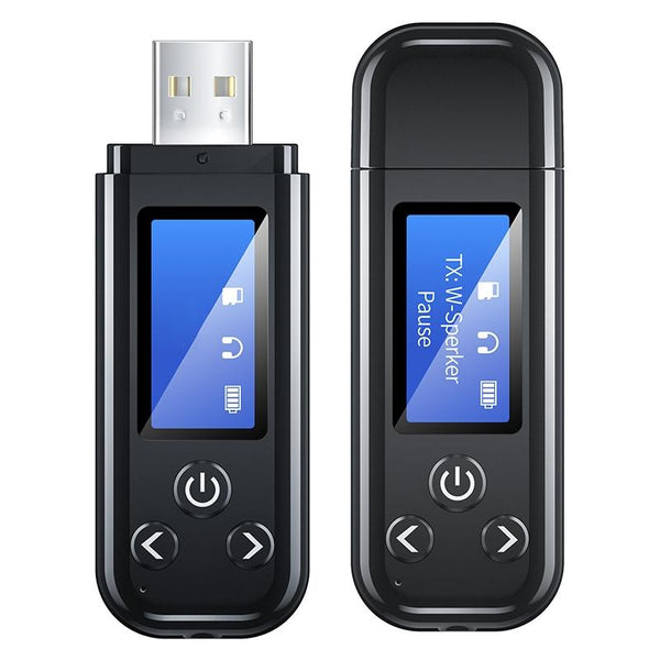 K15-Pro 2 in 1 USB Car Bluetooth 5.0 Audio Adapter Transmitter Receiver with LCD Screen