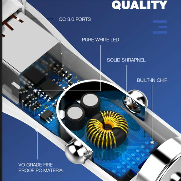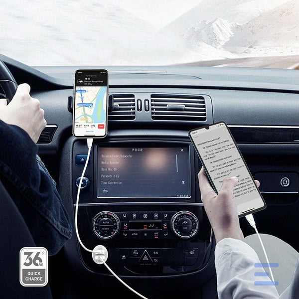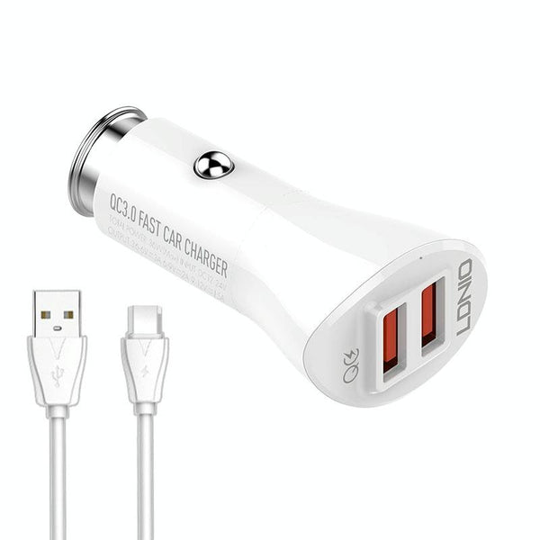 LDNIO C511Q 36W QC 3.0 Phone Fast Charger Dual-USB Ports Smart Car Charger with Micro USB Cable
