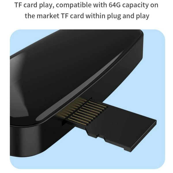 7.Receiving mode: When Bluetooth is not connected, the blue light flashes quickly, and the blue light stays on when the connection is successful. In TF card mode, the blue light flashes once for 1 second when reading the card, and the blue light stays on when the pause is on