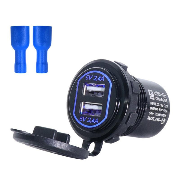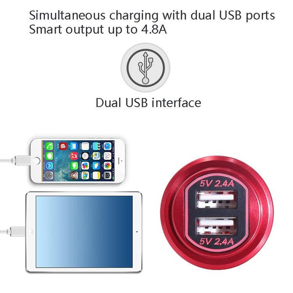 Metal Double USB Car Charger 5V 4.8A Aluminum Alloy Car Charger(Black Shell Blue Light With Terminal)