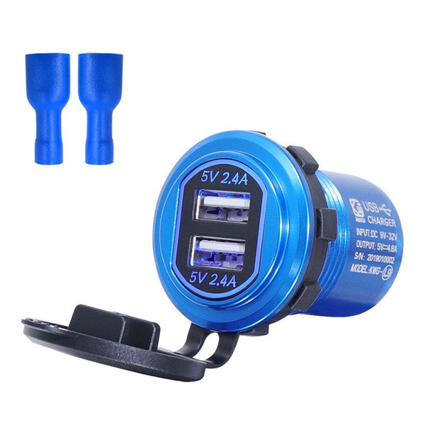Metal Double USB Car Charger 5V 4.8A Aluminum Alloy Car Charger(Blue Shell Blue Light With Terminal)