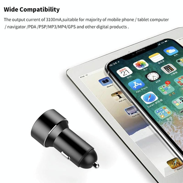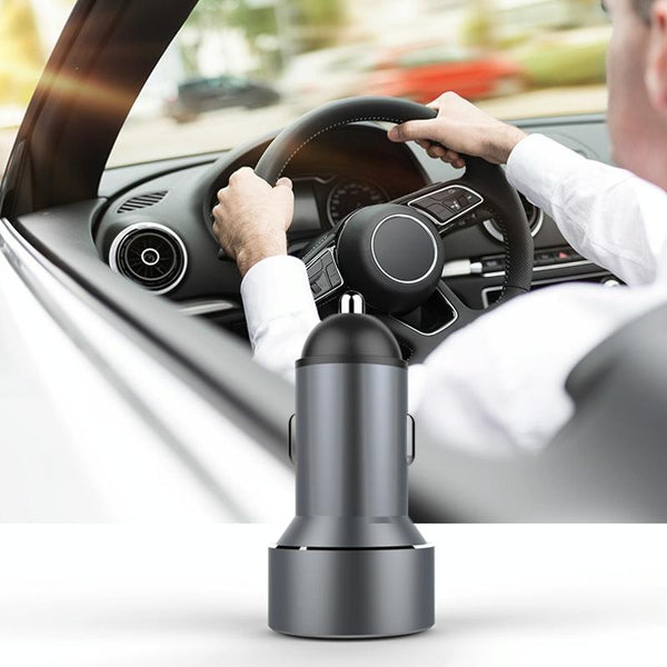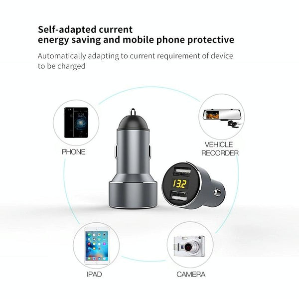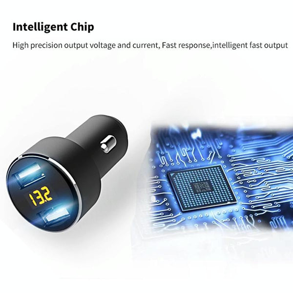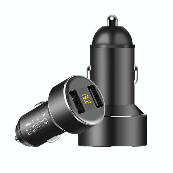 Mini Multifunctional Dual USB Digital Display Car Charger(Black)