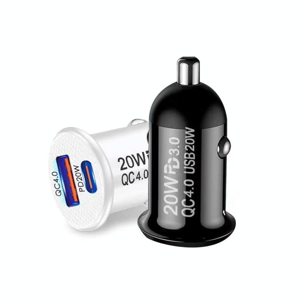 P10 Mini Style QC4.0 USB / PD20W Dual Port Car Charger(Black)