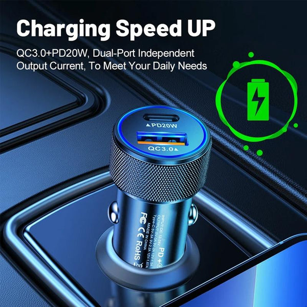 P19 Metal PD20W USB-C + QC18W USB Dual Port Car Charger(Black)