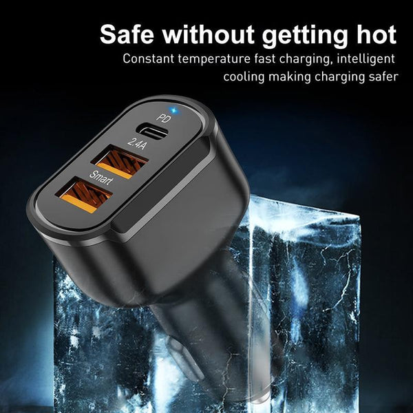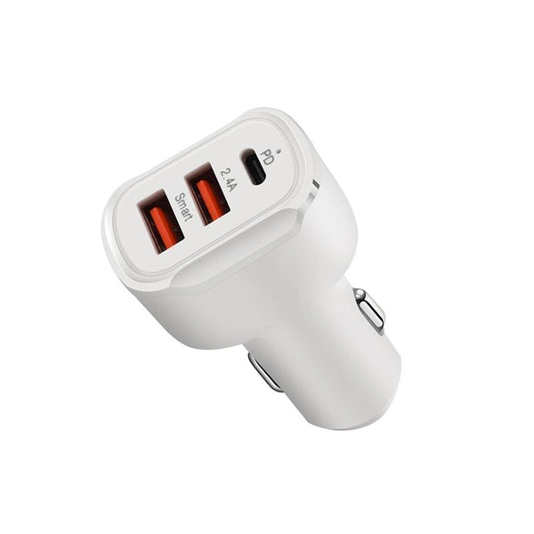 PD+2.4A Dual USB Car Charger, Style: 3 Ports (White)