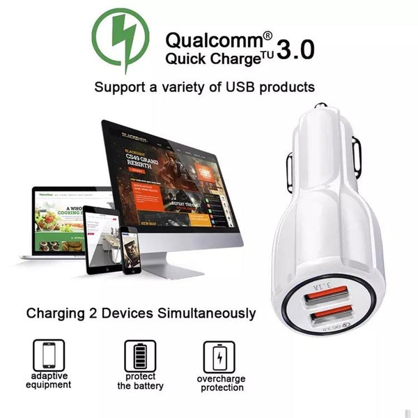 Qc3.0 Dual USB 6A Vehicle Fast Charger / Mobile Phone Tablet Fast Charging(White)