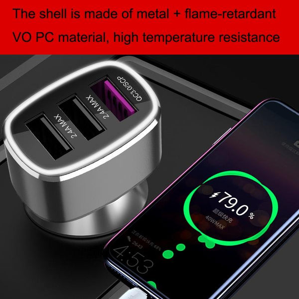 QIAKEY GT780 3 USB Ports Fast Charge Car Charger(Black)
