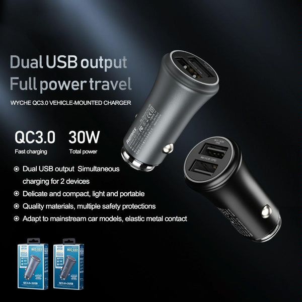 REMAX RCC-223 Vitor Series 30W QC 3.0 Dual USB Interface Car Charger(Black)