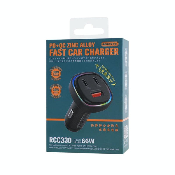 REMAX RCC330 Earl Series 3 in 1 Car 66W PD Fast Charger with Indicator Light
