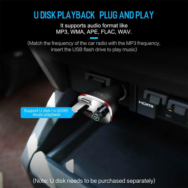 Rock B300 Wireless Bluetooth V4.2 FM Transmitter Radio Adapter Car Charger, With Dual USB Output & Hand-Free Calling, Music Player Support USB Flash Drive & U Disk, Compatible with IOS & Android