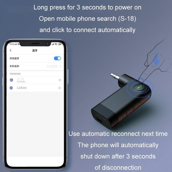 S-18 Car Mini AUX Audio Adapter Wireless Bluetooth 5.0 Receiver