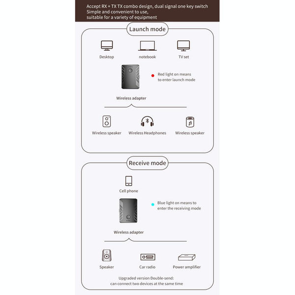 T-19 Bluetooth 5.0 2 In 1 Bluetooth Audio Adapter Receiver Transmitter