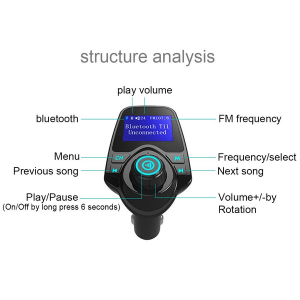 T11 Bluetooth FM Transmitter Car MP3 Player with LED Display, Support Double USB Charge & Handsfree & TF Card & U Disk Music Play Function