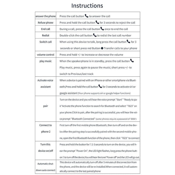 T823 Car Sun Visor Bluetooth Hands-free Call Speaker
