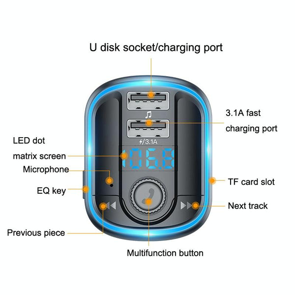 T829S Car Bluetooth Hands-free MP3 Blue Ambient Light
