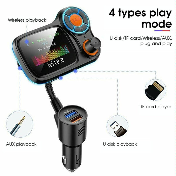 T831 Bluetooth 5.0 Car FM Transmitter Colorful Adapter Car MP3 Player