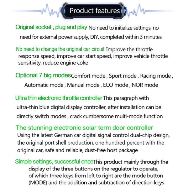 2. Push back feeling super, instant feeling surging power, throttle lighter, engine response more quickly, speed up faster, shift more smoothly, intelligent evolution, subvert your imagination of the throttle controller.
