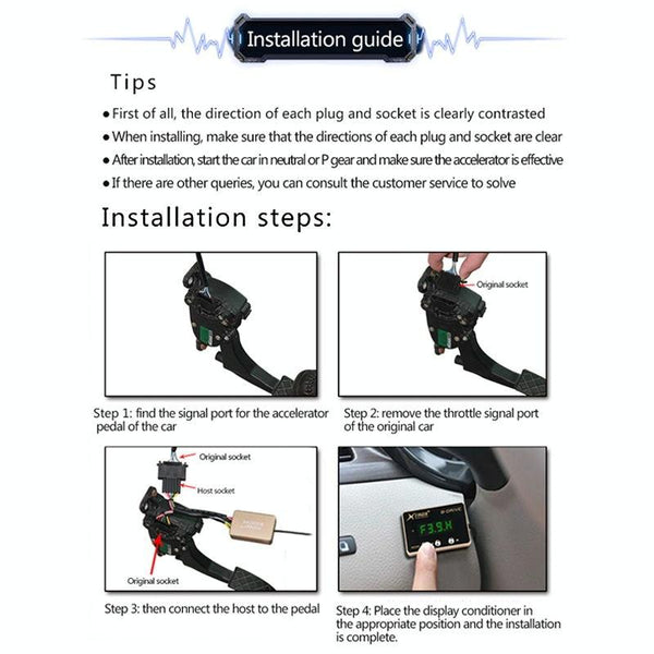 3. After installation, start the car in neutral or P gear and make sure the accelerator is effective.
