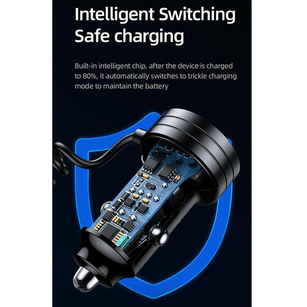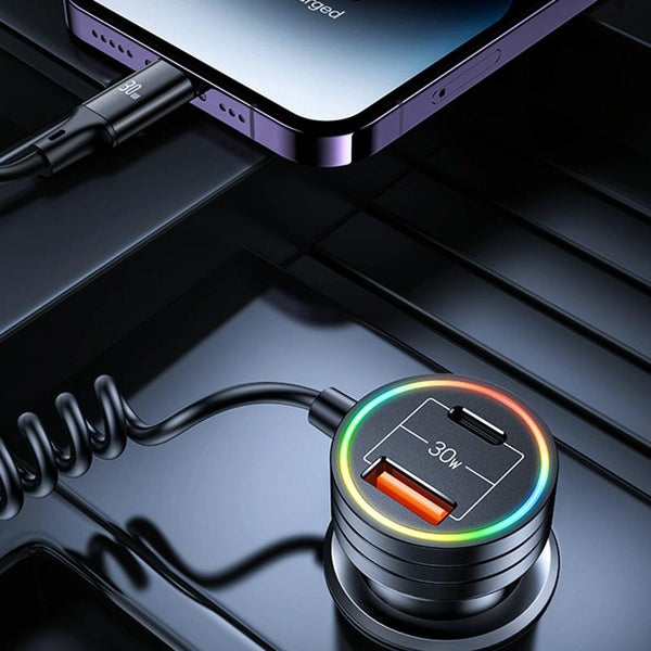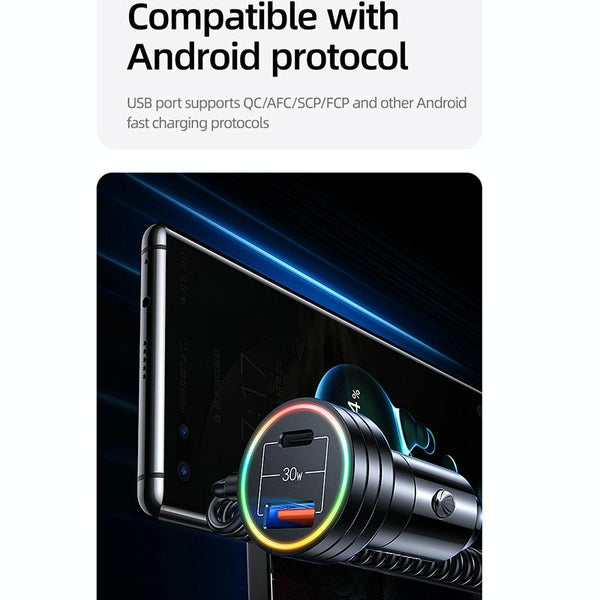 USAMS US-CC167 C33 60W Spring Cable Car Charger with Aperture(Black)