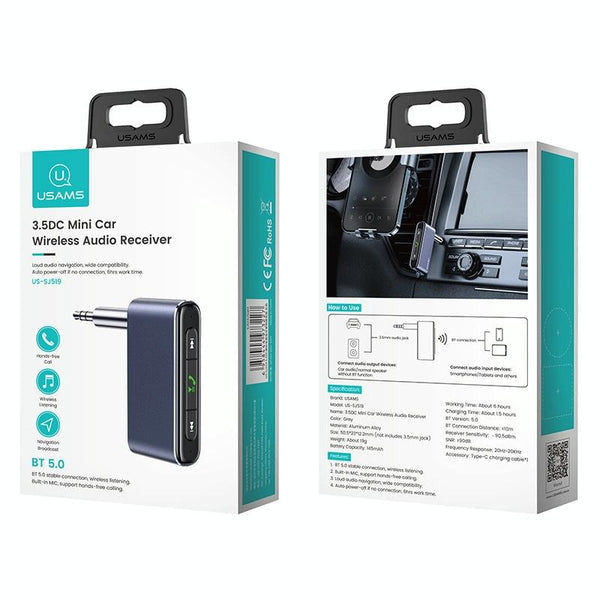 USAMS US-SJ519 3.5mm Plug Mini Car Bluetooth 5.0 Audio Receiver(Grey)