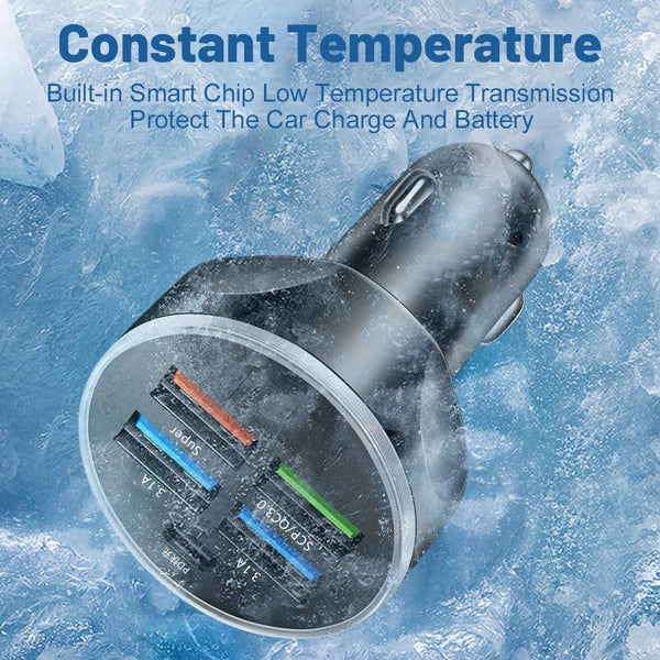 WGS-G37 5 in 1 Digital Display Super Fast Charging Car Charger with Voltmeter (Black)