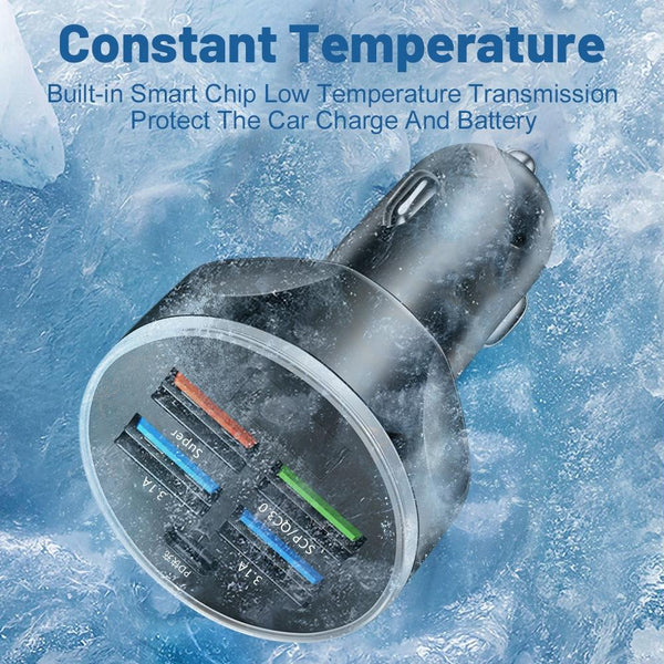 WGS-G37 5 in 1 Digital Display Super Fast Charging Car Charger with Voltmeter (White)