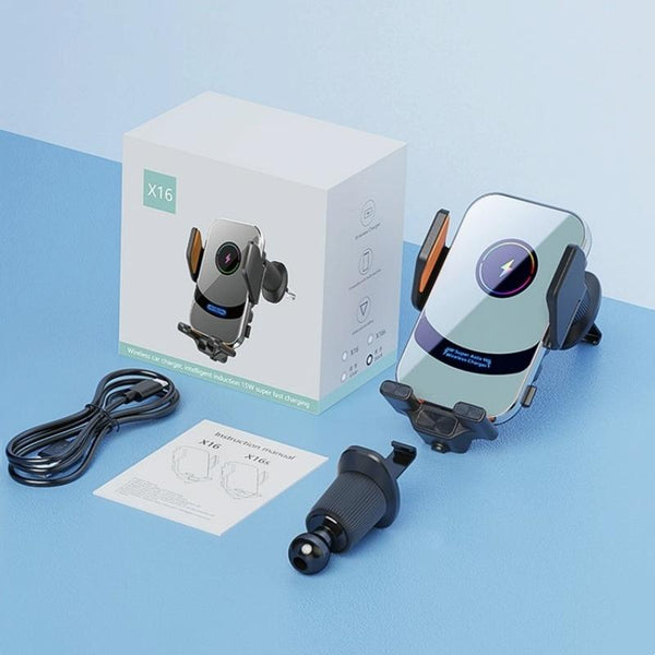 X16 Car Smart Sensor Phone Holder Magnetic Phone Mount Automatic Wireless Charger(Silver)