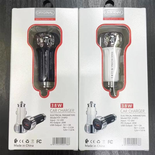 YSY-310PD 38W PD20W USB-C + QC3.0 18W USB Dual Port Fast Car Charger(White)