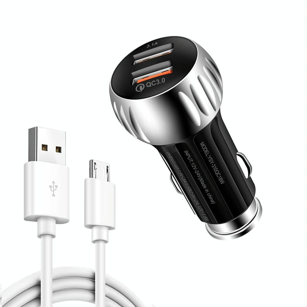 YSY-310QC18W QC3.0 Dual Port USB Car Charger + 3A USB to Micro USB Data Cable, Cable Length: 1m(Black)
