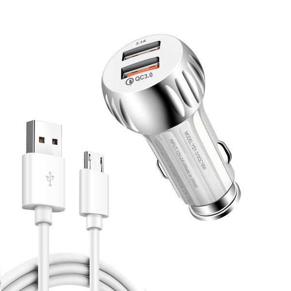 YSY-310QC18W QC3.0 Dual Port USB Car Charger + 3A USB to Micro USB Data Cable, Cable Length: 1m(White)