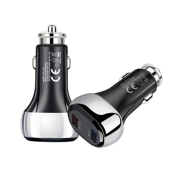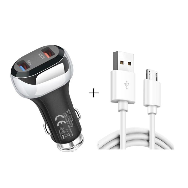 YSY-312 2 in 1 18W Portable QC3.0 Dual USB Car Charger + 1m 3A USB to Micro USB Data Cable Set(Black)