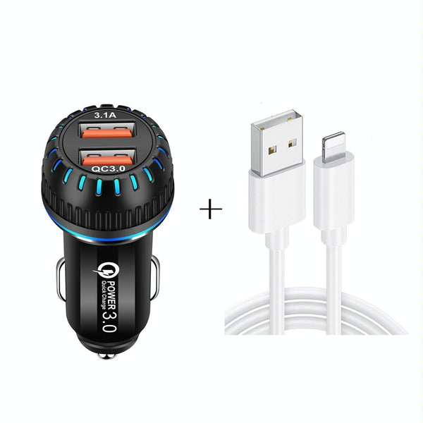 YSY-349 QC3.0 Dual Port USB Car Charger + 3A USB to 8 Pin Data Cable, Length: 1m(Black)