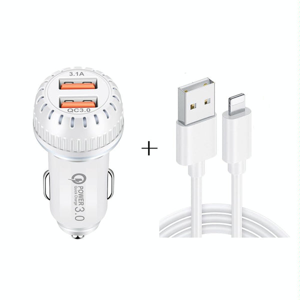 YSY-349 QC3.0 Dual Port USB Car Charger + 3A USB to 8 Pin Data Cable, Length: 1m(White)