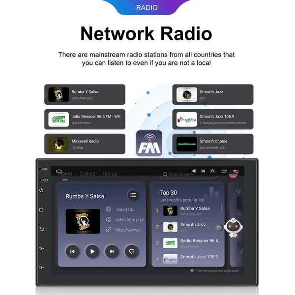 16. Internet radio (optional feature): with mainstream radio stations covering more than 20 countries and regions around the world, you can listen to any real-time popular content around the world through the in-car radio