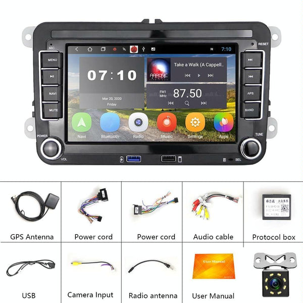 For Volkswagen Q3300KT 7-inch 1+16G Car Multimedia Player Navigation Bluetooth Reversing Integrated Machine Android 10.0, Style:Standard+12Lights Camera