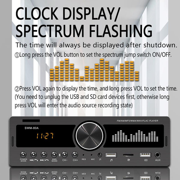 SWM-80A DC12V Car MP3 Support FM / AM & Bluetooth & Mobile Phone Voice Assistant