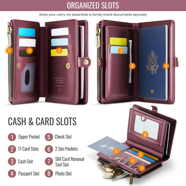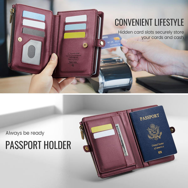 CaseMe-Me60 Multi-functional Anti-theft Swipe Passport Wallet(Red)